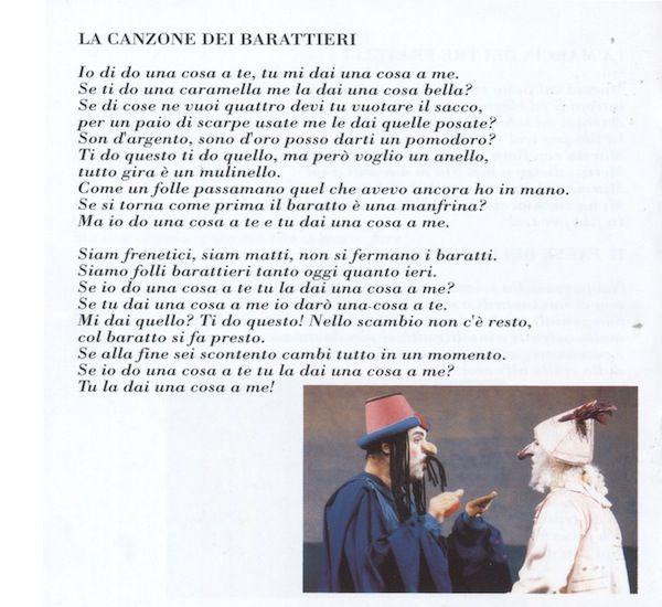 Sei attori, all’interno di una coloratissima scenografia in continuo movimento, danno vita a numerosi personaggi attraverso continui cambi di costume. La magia di Emanuele Luzzati conduce i protagonisti all’interno di un lavoro d’attore, di musica, di poesia.