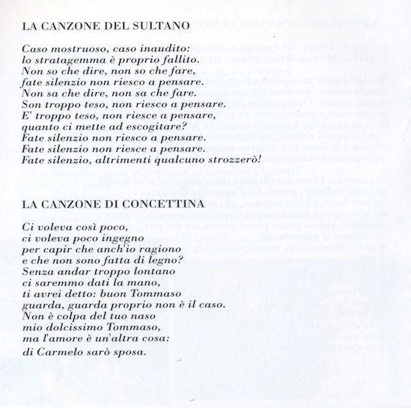 … Spettacolo mosso, vivace, piacevole, ben recitato, reso bene da tutti gli attori, con la splendida scenografia di Luzzati e la musica di Oscar Prudente… C’è finalmente da “godere” a teatro per la bravura in specie di Dario Spadon, che sa alternare il ruolo del sultano imponente a quello del venditore confusionario ma capace di coinvolgere il pubblico…