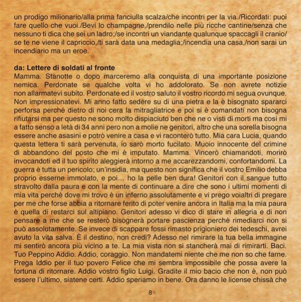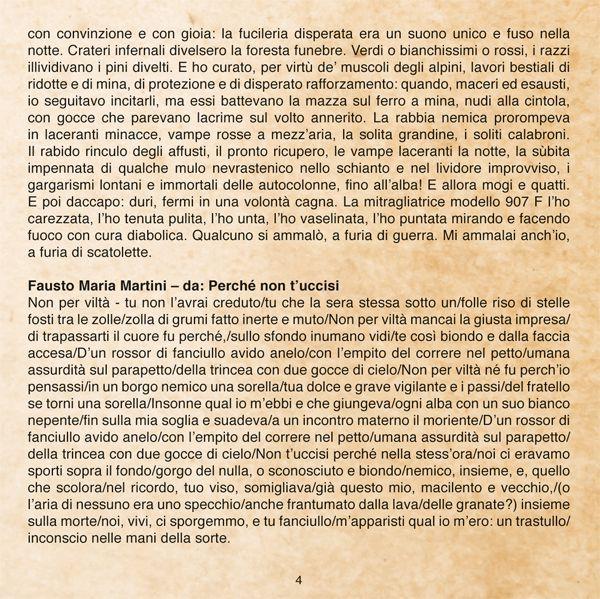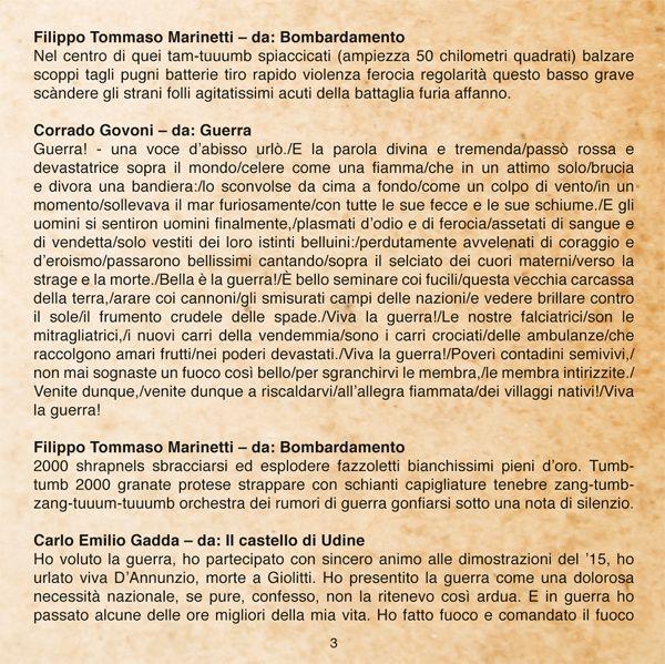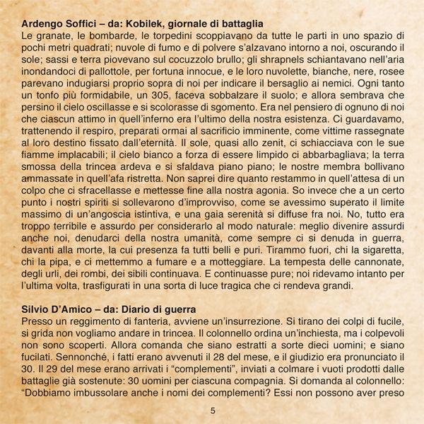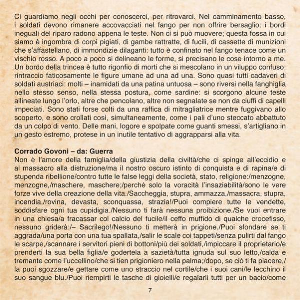 Due attori affrontano un percorso tra letteratura e storia, con testi di poesia e prosa immersi in musica, suoni e video rigorosamente originali, per raccontare la Prima Guerra Mondiale tra incanto e disillusione, dall’euforia interventista alla presa di coscienza delle atrocità del primo conflitto tecnologico e di massa.